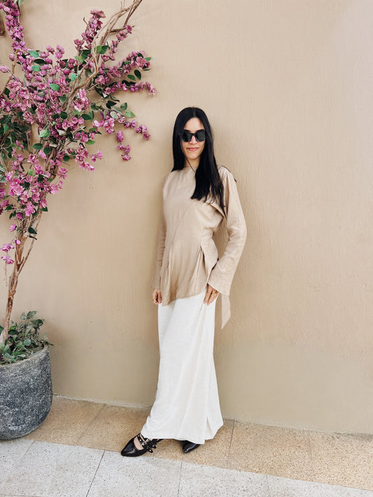 Beige twisted linen blouse