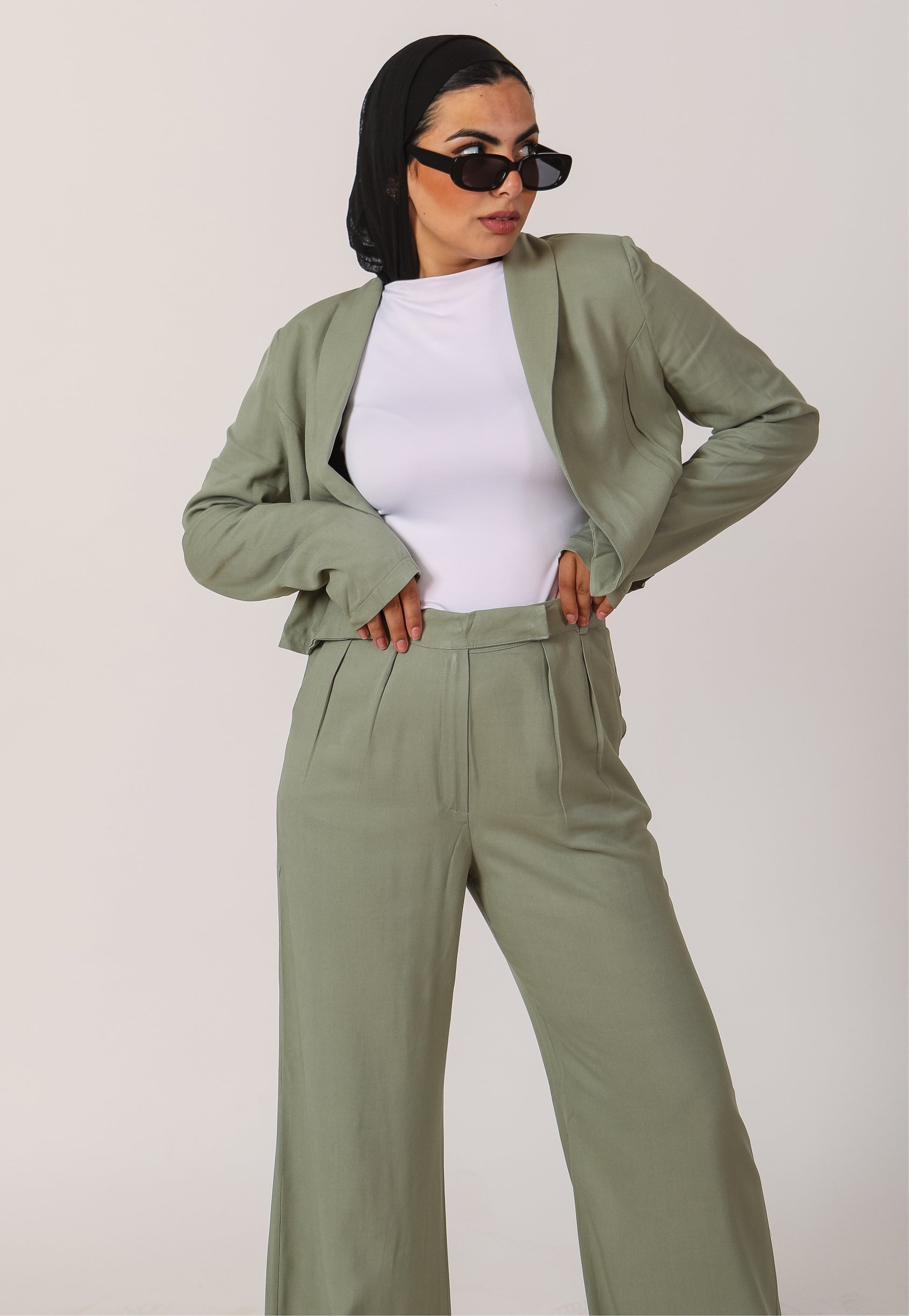 100% cotton, front fastening, comfortable, flowy pants matched with our cropped vibrant blazer for a classy elegant or casual everyday look.