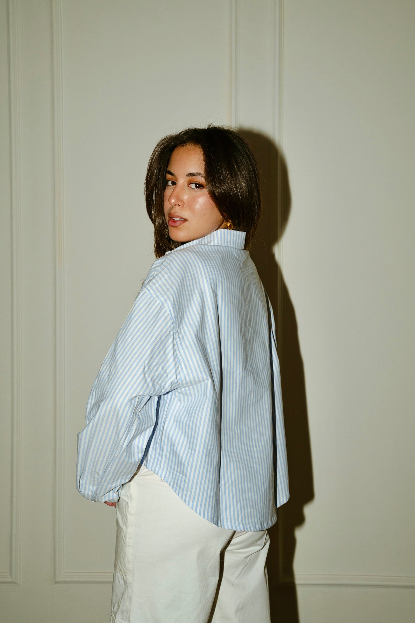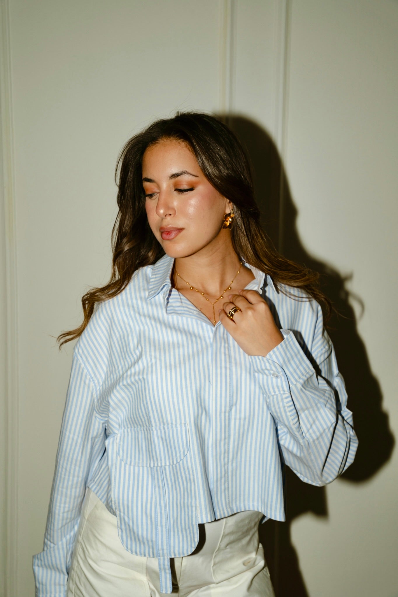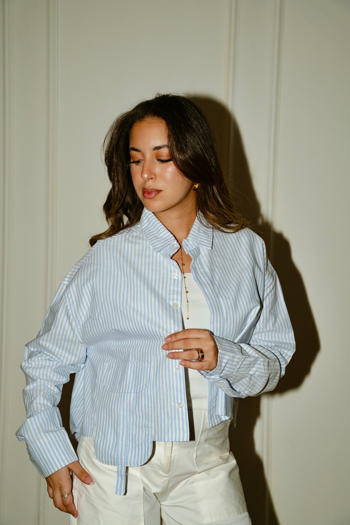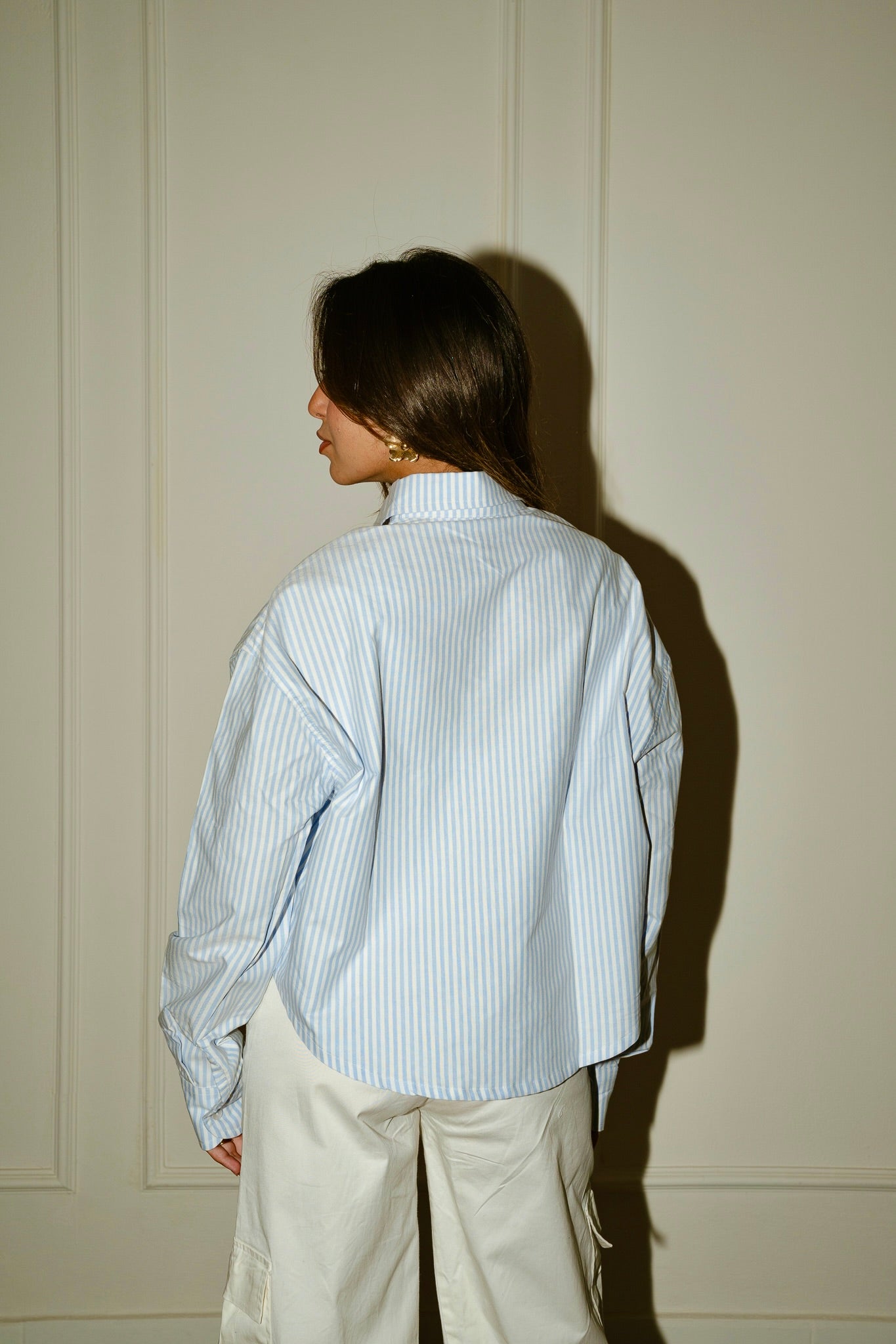 Striped cropped oxford shirt